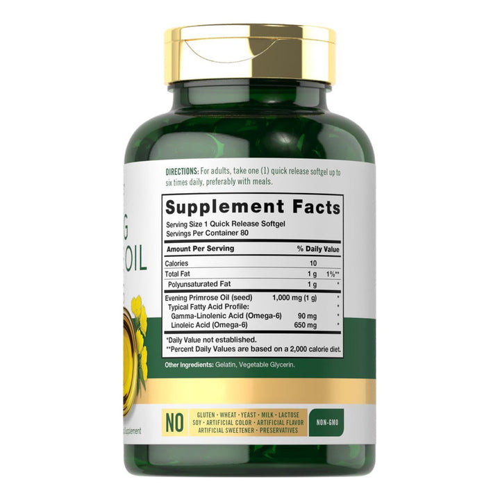 Desde tiempos antiguos, el aceite de onagra ha sido un aliado natural en las prácticas herbales. Ahora, lo tienes al alcance de la mano en una forma conveniente y efectiva. Cada cápsula blanda proporciona 1,000 mg de esta maravilla nutricional, que apoya tu salud interna con ingredientes cuidadosamente seleccionados y probados en laboratorio. 💪