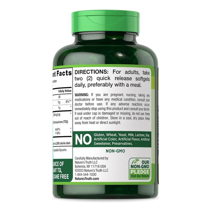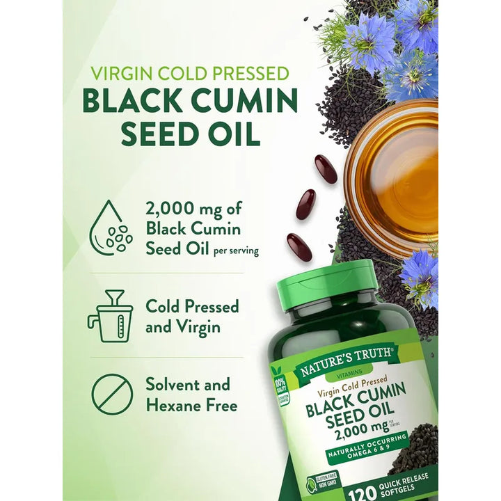 El deseo de sentirnos mejor y vivir más plenamente es universal. Con 2000 mg de aceite de semilla de comino negro por porción, estas cápsulas ofrecen omegas y antioxidantes naturales, ingredientes clave que tu cuerpo necesita. La calidad inigualable garantizada por Nature's Truth significa que puedes confiar en cada cápsula que tomas.