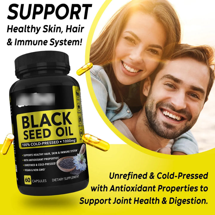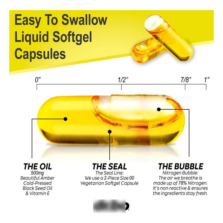 Cápsulas De Aceite De Semillas Negras Puro Prensado En Frío 500 Mg Para Piel Y Cabello Saludable