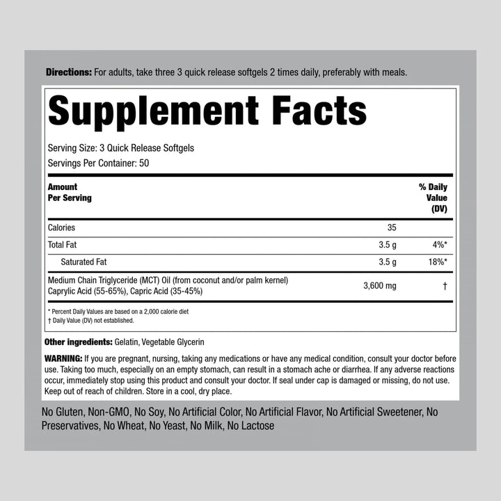 Cápsulas De Aceite MCT 3600 Mg 150 Unidades Suplemento Cetogénico Sin Gluten