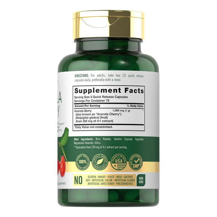 Cápsulas De Acerola 1000 Mg Extracto Natural De Somos Importaciones