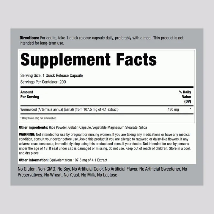 Capsulas De Ajenjo 430 Mg 200 Unidades Extracto Concentrado Natural