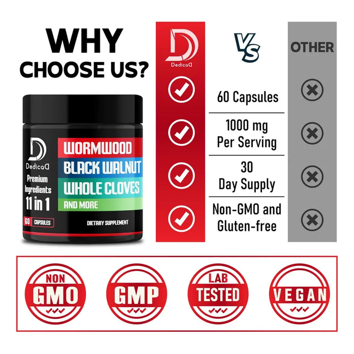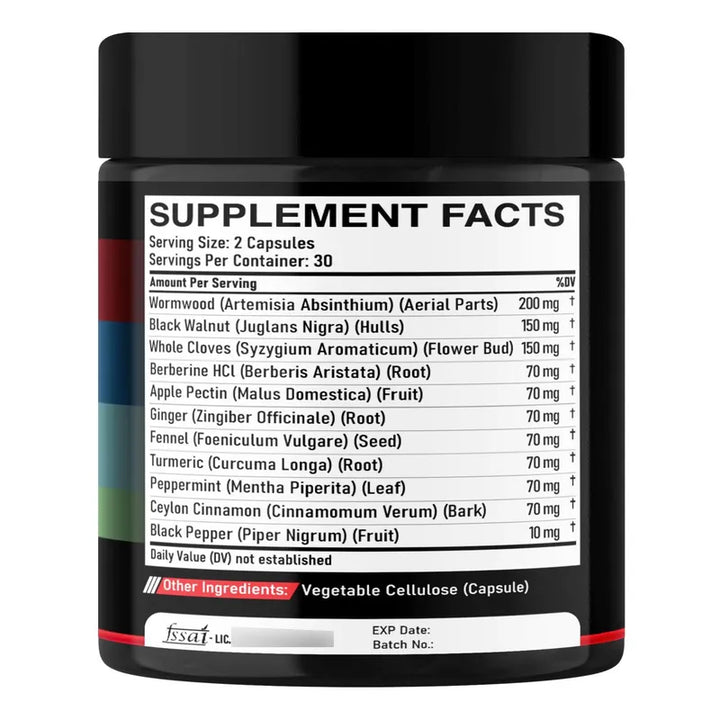 - Potente soporte al sistema inmunológico gracias a la combinación de ajenjo y nuez negra.