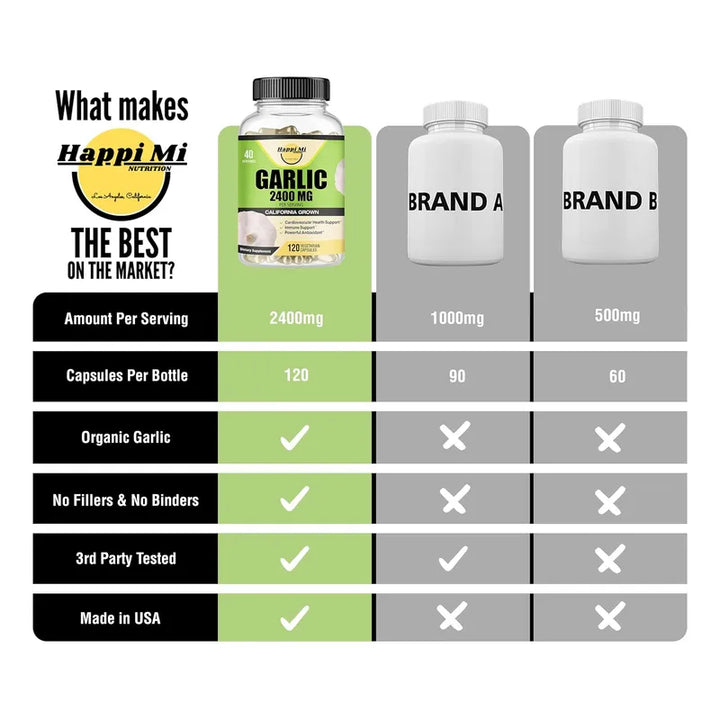 Las cápsulas de ajo están hechas de bulbos orgánicos, cultivados en las fértiles tierras de California, EE. UU., sin pesticidas ni conservantes. Esto garantiza que lo que consumes está diseñado para cuidar de ti desde dentro, con la pureza que tu cuerpo merece.