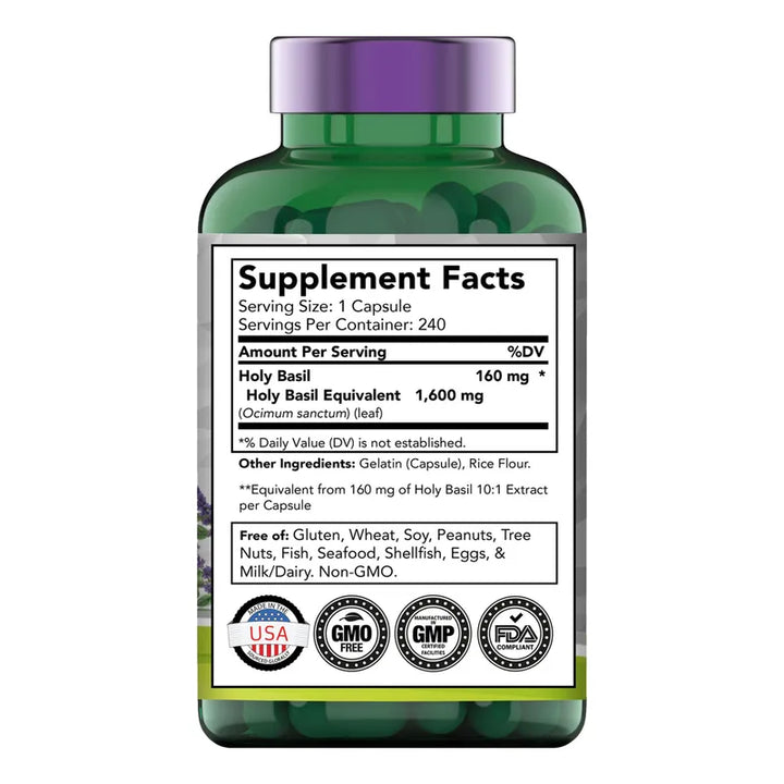 Capsulas De Albahaca Sagrada 1600 Mg 240 Unidos Para 8 Mes Triunfa Sobre El Estrés