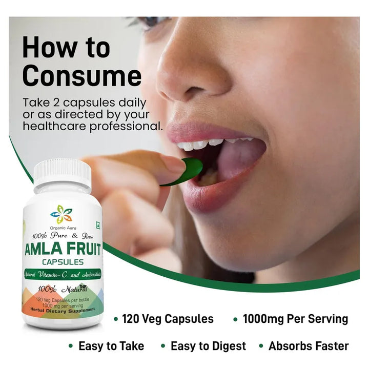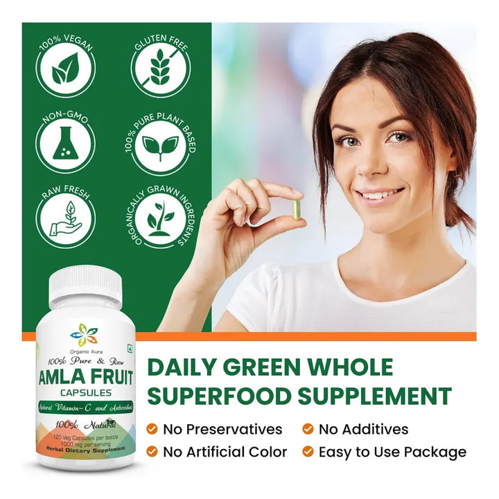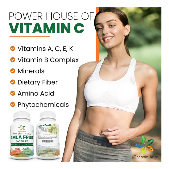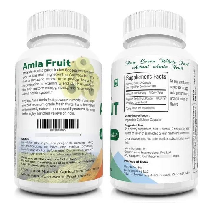 El ingrediente clave, Amla, una fruta cultivada naturalmente, es famosa por ser una rica fuente de Vitamina C natural y antioxidantes. Combatir los radicales libres nunca ha sido tan sencillo. Cada cápsula está diseñada para optimizar tu salud celular y reforzar tus defensas naturales, ayudando a que te sientas siempre lleno de energía y vitalidad. Con 1000 mg de Amla puro por porción, te garantizamos nada menos que calidad y efectividad.