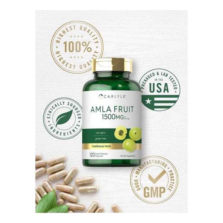 Capsulas De Amla 1500 Mg 120 Unidades Suplemento Sin Gluten Y Sin Omg