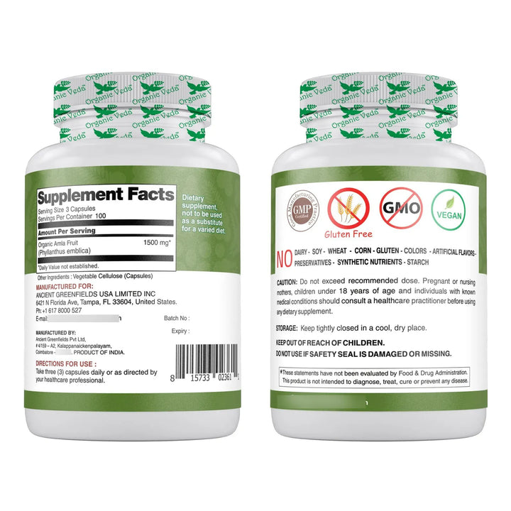 - Concentración potente: 1500 mg de polvo puro de Amla por cápsula. 💊