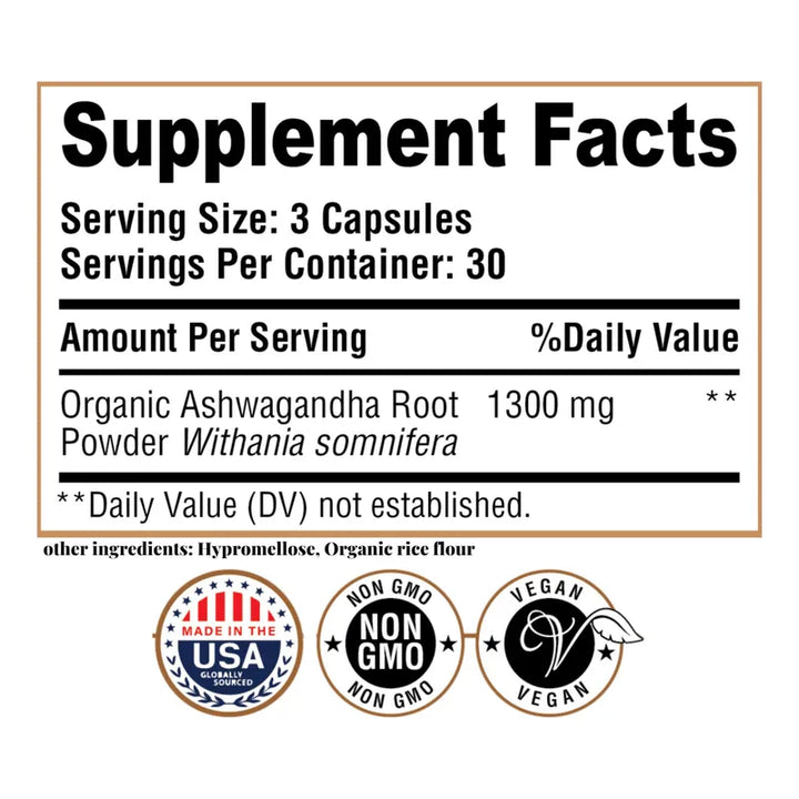 - Fórmula potente: 1300 mg de Ashwagandha orgánica 🧘