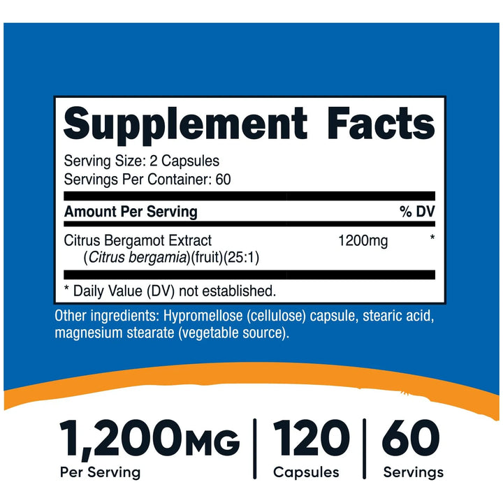 1. Alta Potencia: Cada porción contiene 1200 mg de extracto puro de bergamota cítrica. 💊