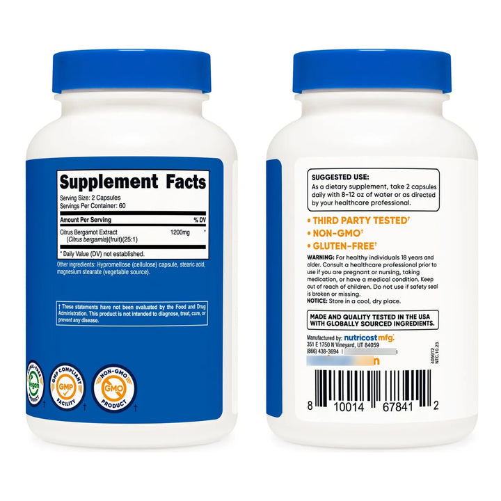 Imagina despertar cada mañana con más energía, sintiendo que tu cuerpo está en armonía. Nuestro extracto premium de bergamota cítrica está diseñado para ayudarte a alcanzar ese equilibrio, respaldado por los más altos estándares de calidad. Fabricado en instalaciones certificadas por la NSF y cumpliendo con las GMP, este suplemento es seguro, vegano y libre de gluten u OMG.