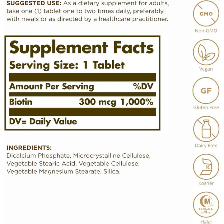 Capsulas De Biotina 300 Mcg Solgar Para Piel Cabello Y Uñas Saludables