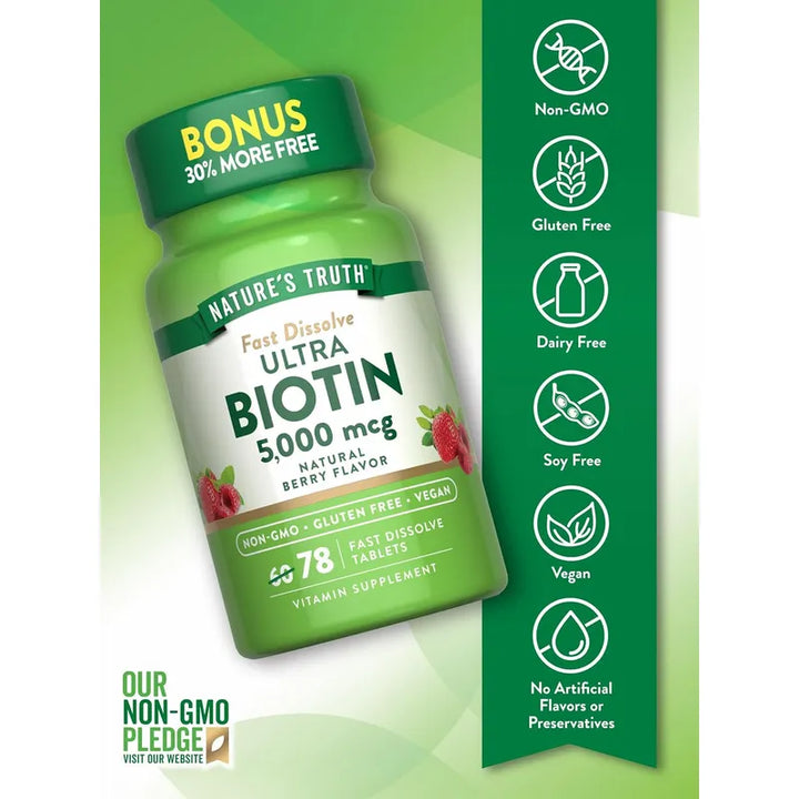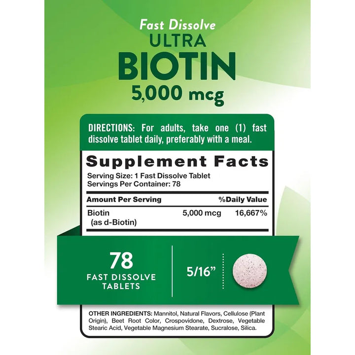 - Biotina de Alta Potencia: Asegura un aporte diario de 5000 mcg.
