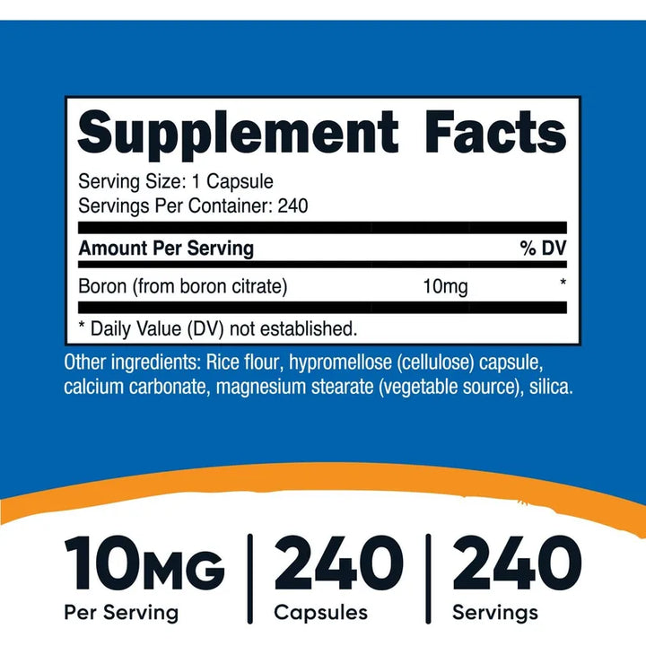 Capsulas De Boro 10 Mg 240 Unidades Para Salud Osea