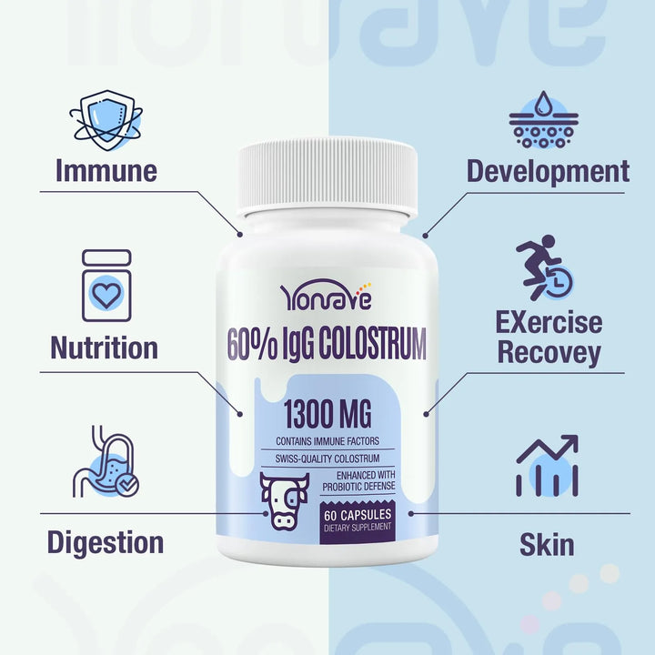 Este no es un suplemento cualquiera. Imagina tener acceso a un producto derivado de vacas alimentadas con pasto, recolectado poco después del parto para garantizar la máxima potencia. Cada cápsula está cargada con un 60% de IgG, el nivel más alto disponible en el mercado, junto con lactoferrina, probióticos y factores de crecimiento esenciales. Tu cuerpo merece lo mejor, y aquí está.