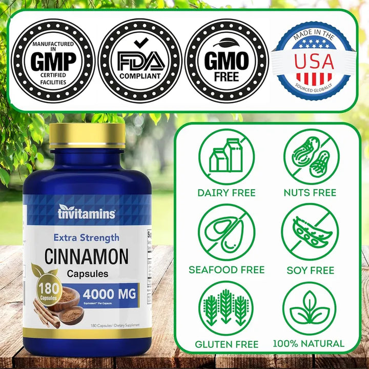 - 💪 Cápsulas de canela extra fuertes: 4000 mg de poder en cada porción.