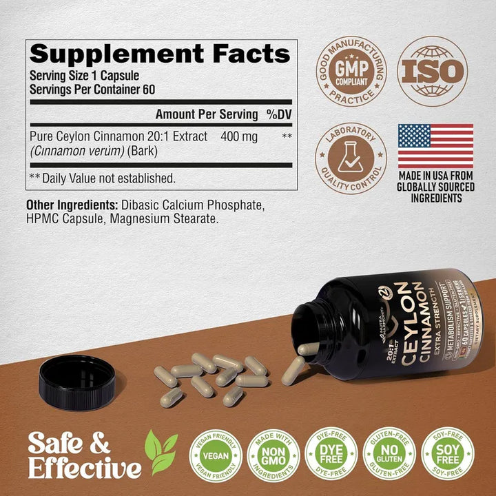 - 8000 mg de extracto de Canela de Ceilán por cápsula: Experiencia de una concentración superior. 🌟