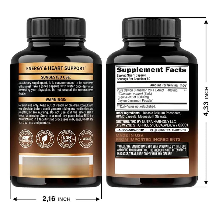 Con un increíble 98% de absorción, este suplemento garantiza que aprovechas al máximo cada cápsula. Ya no tendrás que preocuparte por la absorción ineficiente de los nutrientes; este producto está diseñado específicamente para entregarte todos los beneficios que ofrece la canela de Ceilán. Su proceso de fabricación en Estados Unidos asegura calidad, libre de OGM, gluten, lácteos y otros alérgenos comunes, por lo que es la elección perfecta para aquellos con dietas restringidas.