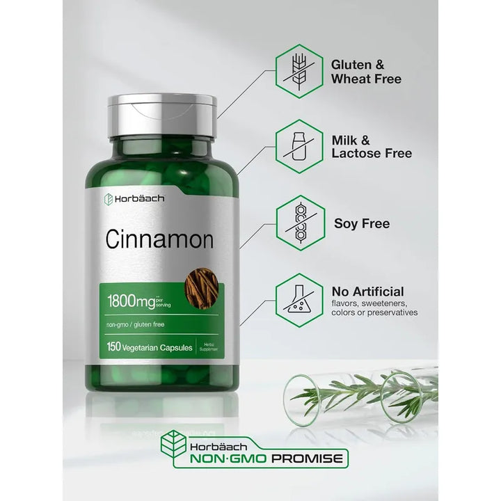 Cápsulas De Canela De Ceilán Horbaach Suplemento Vegano Potente 1800 Mg