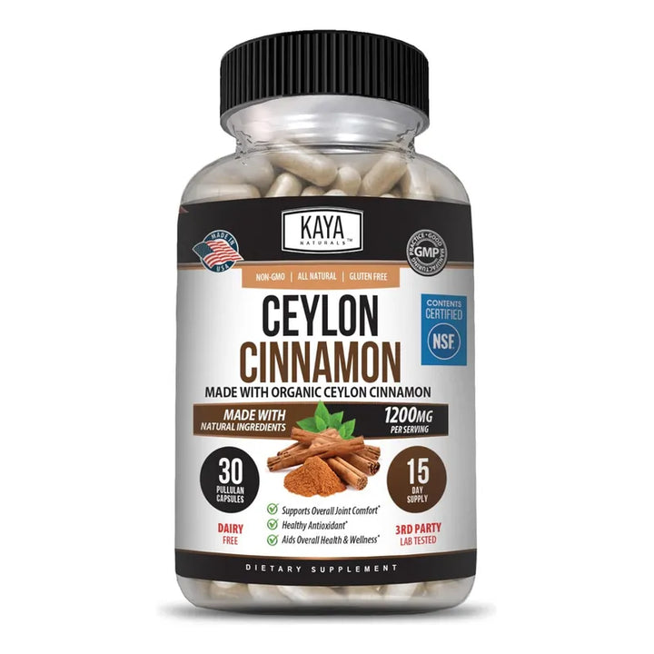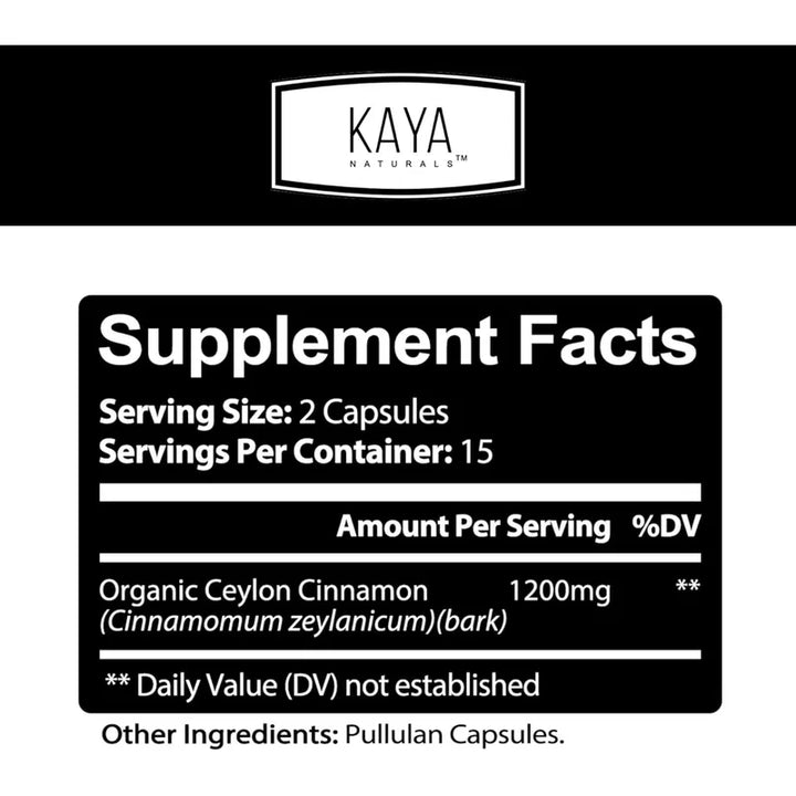 Las Cápsulas de Canela de Ceilán de Kaya Naturals funcionan a través de su potente concentración de canela de Ceilán, que ha demostrado beneficios para la regulación de la glucosa y la lucha contra el estrés oxidativo.