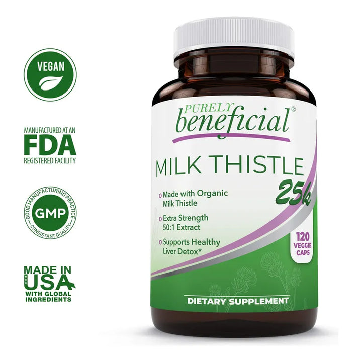 ¿Por qué comprometer tu salud con productos llenos de ingredientes artificiales? Nuestras cápsulas se destacan por estar libres de rellenos y conservantes nocivos. Diseñadas para brindar un valor nutricional óptimo, cada píldora encierra la fuerza concentrada de 500 mg del mejor extracto 50:1, equivalente ni más ni menos que a 25,000 mg de cardo mariano en su forma más pura.