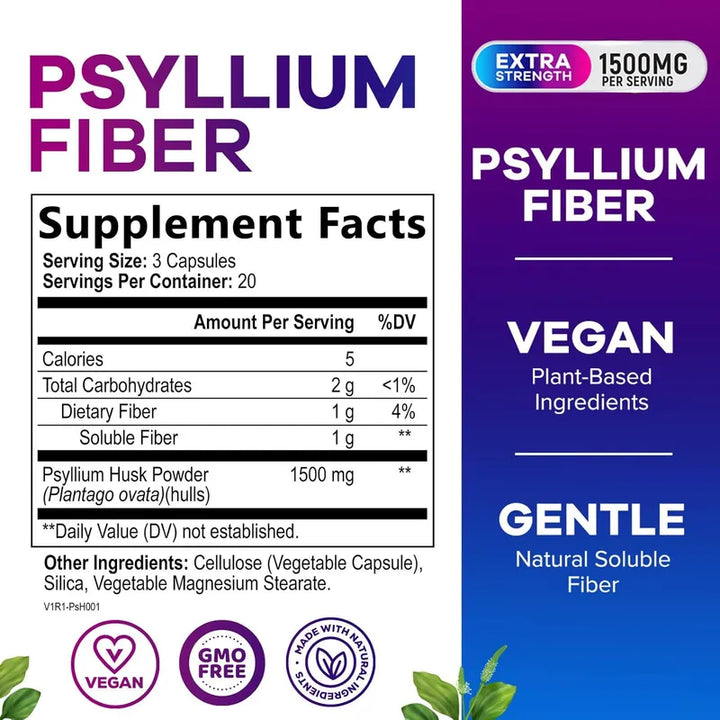 Cápsulas De Cáscara De Psyllium 1500 Mg Suplemento De Fibra Soluble