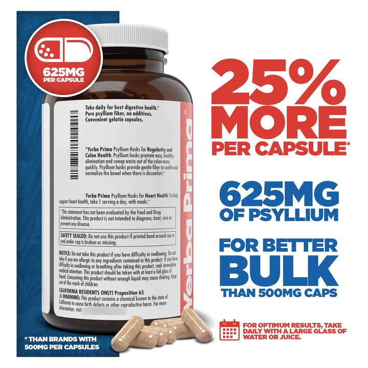 - 625 mg de cáscara de psyllium por cápsula para máxima eficacia 💊