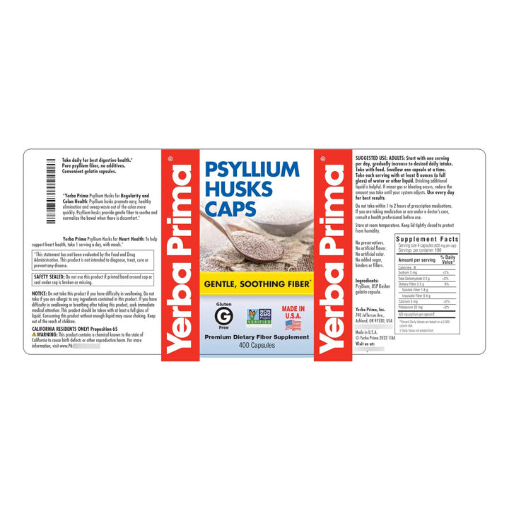 Cápsulas De Cáscara De Psyllium 625 Mg 400 Unidades Fibra Natural Para Digestión Y Saciedad