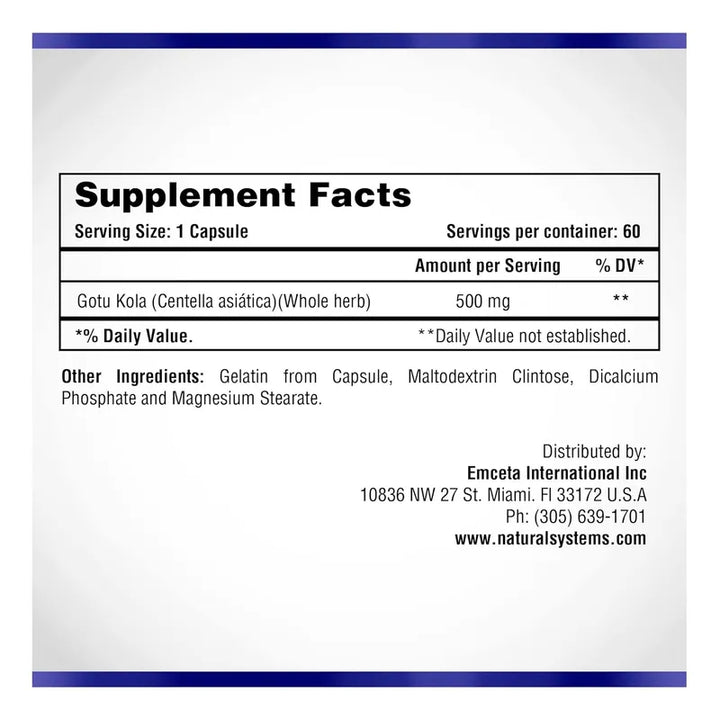 Capsulas De Centella Asiatica 500 Mg Gotu Kola Para Piel Y Mente