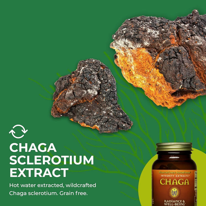 - Extracto puro de Chaga: Máxima concentración de nutrientes en cada cápsula. 🌟