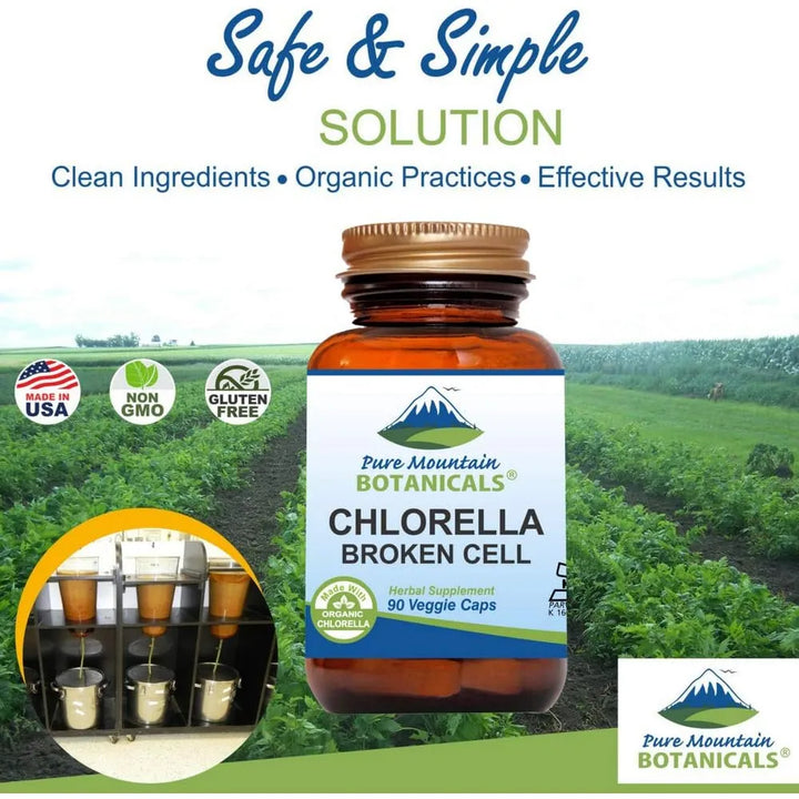 Cápsulas De Chlorella Orgánica 500 Mg Pure Mountain Botanicals Vegano Kosher