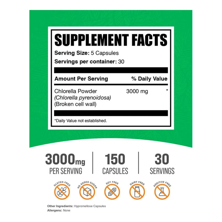 Capsulas De Chlorella Pared Celular Rota 150 Unidades Superalimentario Vegano
