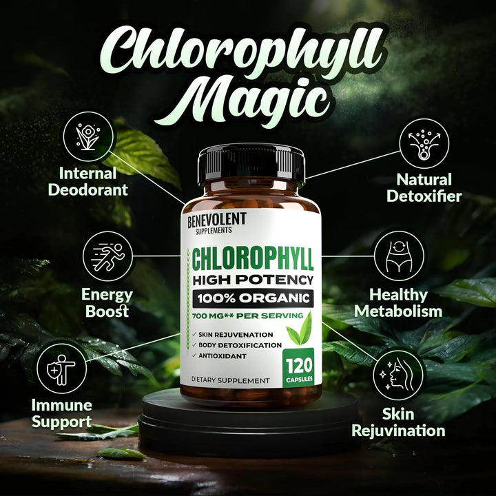 La clorofila, conocida como la "sangre verde" de las plantas, actúa directamente en tu organismo para oxigenar las células, eliminar toxinas y promover la regeneración celular. Al tomar nuestras cápsulas diariamente, estarás proporcionando a tu cuerpo una dosis concentrada de estos beneficios, logrando una transformación desde adentro hacia afuera.