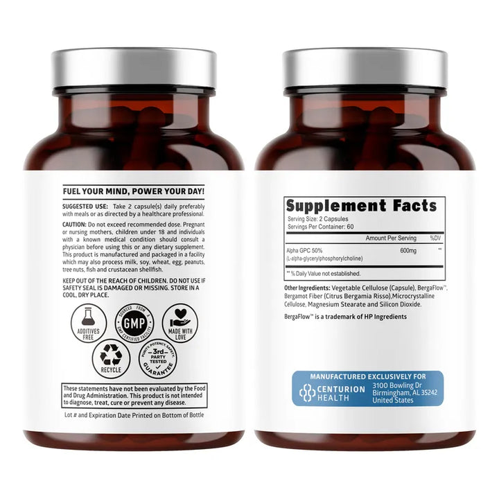 Capsulas De Colina Alpha GPC Suplemento Natural Para Memoria Y Concentracion