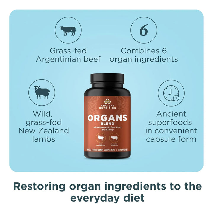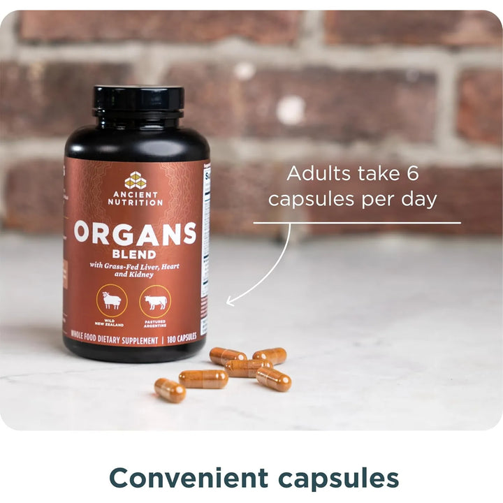 Capsulas De Complejo De Organos Naturales Hígado Corazón 180 Unidades Ancient Nutrition
