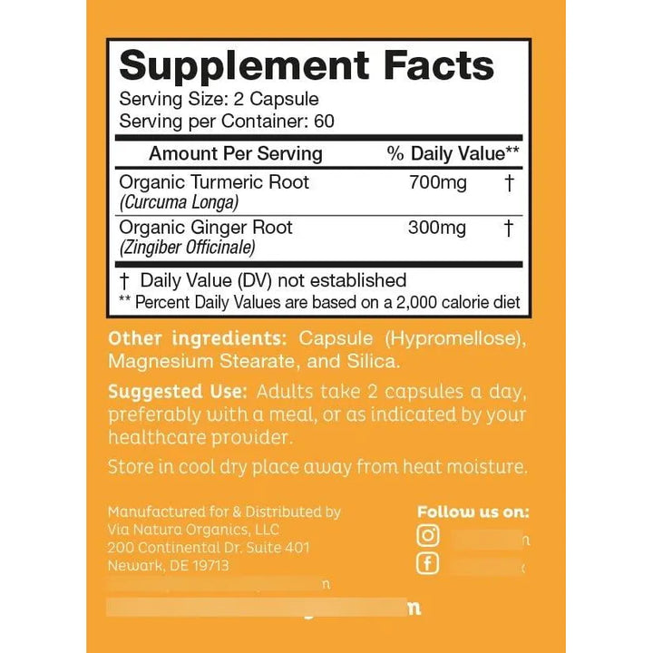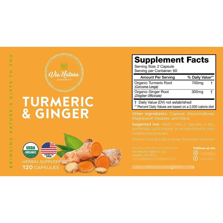 Capsulas De Curcuma Y Jengibre 1000 Mg Organicas 120 Unidades Refuerzo Inmunologico