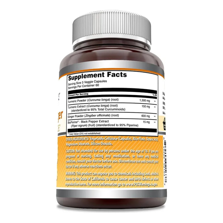 Imagínate disfrutando de una rutina más relajada, con la energía y vitalidad necesarias para enfrentar cada momento. Esta combinación de cúrcuma, jengibre y BioPerine no solo es un suplemento, es un cambio de estilo de vida. Con 60 porciones en cada botella, te acompañarán durante todo tu viaje hacia una mejor salud.