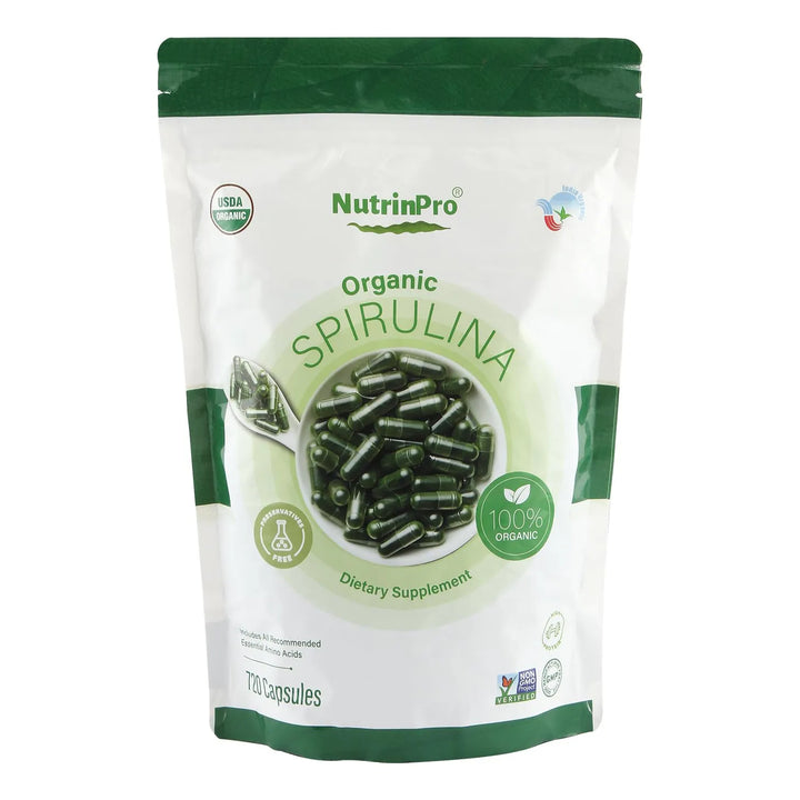 Cápsulas De Espirulina Orgánica USDA 720 Unidades 100 Pura Vegano Sin Gluten