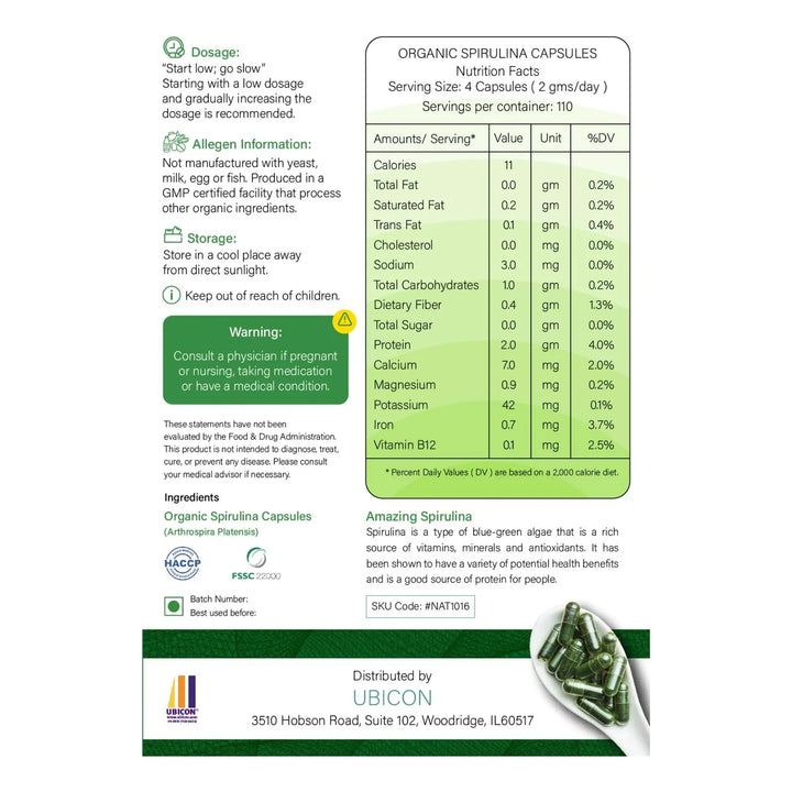Imagina despertar cada día con energía radiante, sintiéndote más fuerte, más saludable y listo para conquistar cualquier desafío. Eso es exactamente lo que nuestras Cápsulas de Espirulina Orgánica USDA pueden ofrecerte. Este superalimento 100% puro, sin OMG, sin gluten y libre de químicos, es tu aliado perfecto para una vida llena de vitalidad.