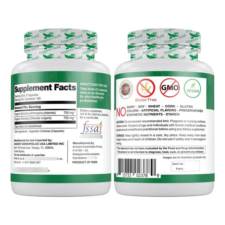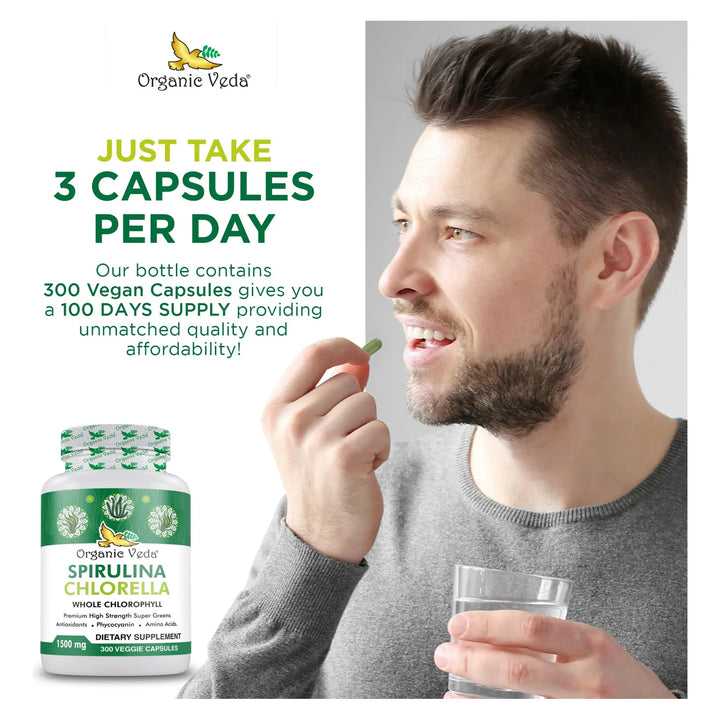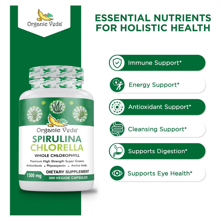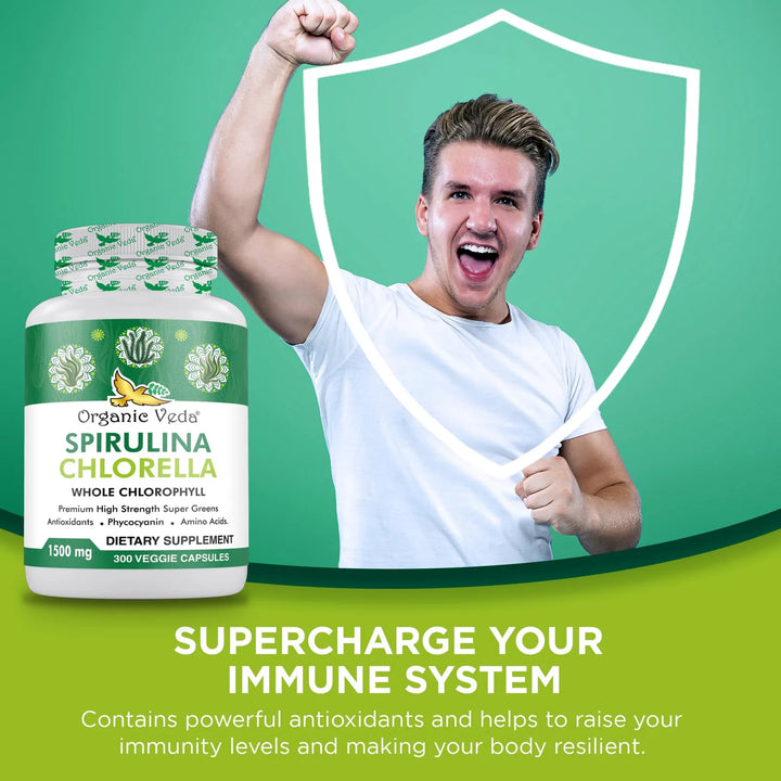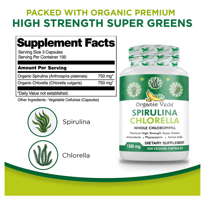 Cápsulas De Espirulina Y Clorella Orgánica 1500 Mg 300 Unidades Energía E Inmunidad
