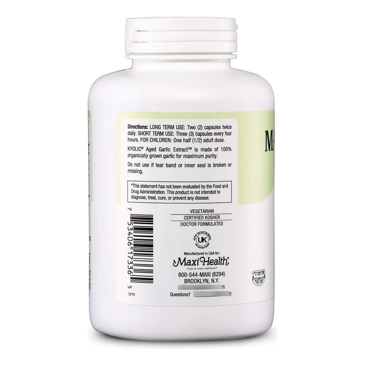 ¿Cansado de suplementos que prometen mucho pero cumplen poco? Nuestras cápsulas son 100% veganas, libres de gluten y sin ingredientes artificiales, garantizando una opción saludable y ética para toda la familia. Fabricadas en los Estados Unidos bajo estrictos estándares de calidad y certificadas Kosher, cada cápsula contiene 400 mg de extracto de ajo envejecido de todo el bulbo, asegurando máxima potencia y pureza.
