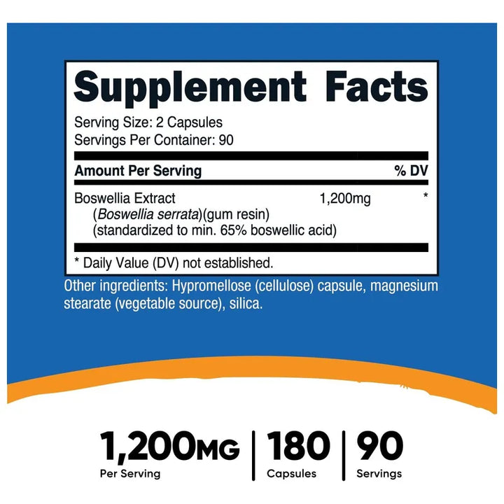Capsulas De Extracto De Boswellia 1200 Mg 180 Unidades Nutricost Veganas