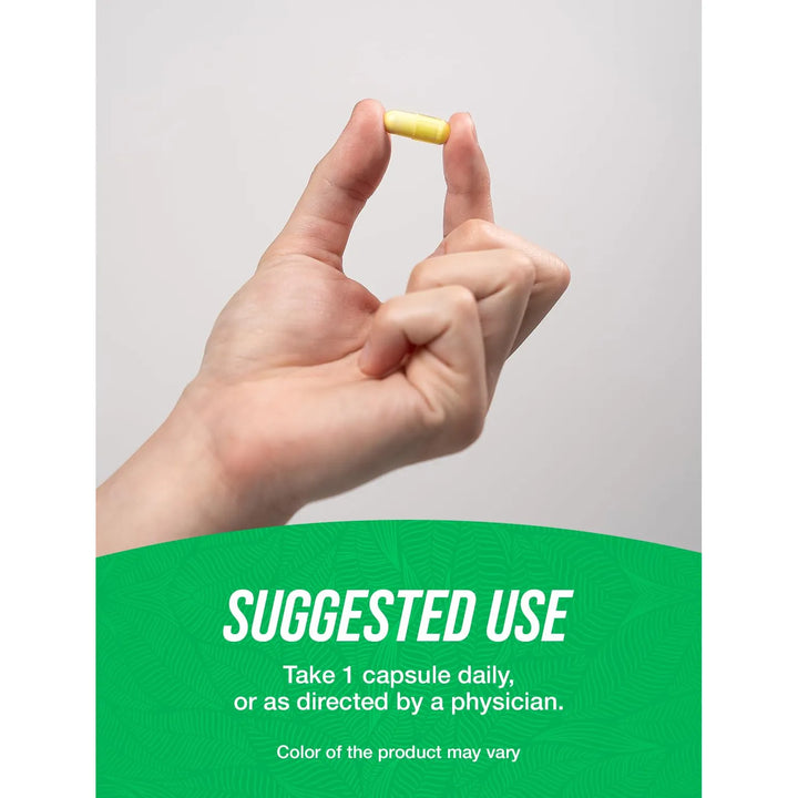 - Tomar 1 cápsula al día preferiblemente con alimentos.