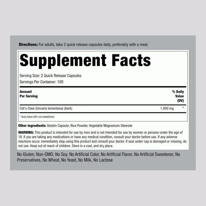 Capsulas De Garra De Gato 1000 Mg 200 Unidades Suplemento Natural Sin Gluten