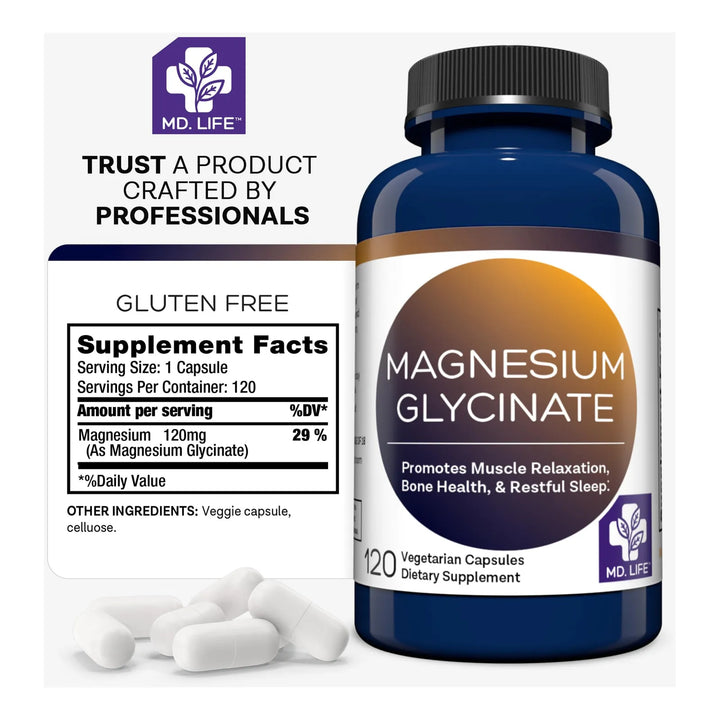 Cápsulas De Glicinato De Magnesio 120 Unidades Para Dormir Y Relajación Muscular
