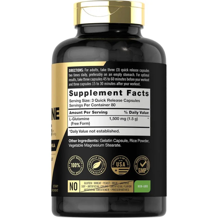 Nuestro producto te ofrece la comodidad que mereces: con 240 cápsulas por envase, tienes suficiente glutamina para mantener tus entrenamientos al máximo durante toda la temporada. Pero, ¿por qué deberías elegirnos? Porque estas cápsulas contienen el aminoácido más abundante del cuerpo, clave para la recuperación muscular y la salud general.