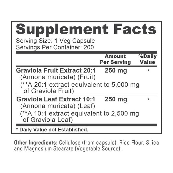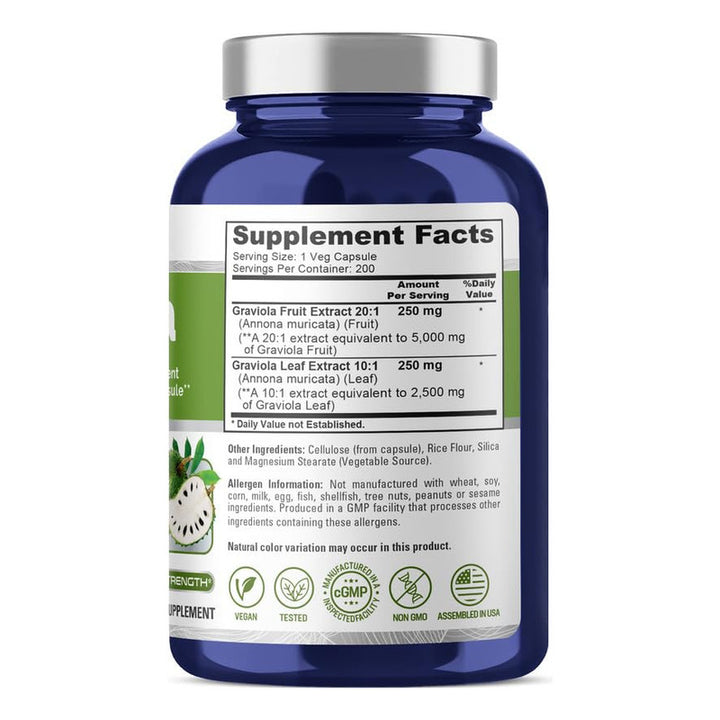La Graviola es famosa por sus beneficios antioxidantes y propiedades que apoyan tu sistema inmunológico. Con nuestras cápsulas, no solo adquieres un suplemento; abrazas un estilo de vida más saludable y balanceado. Cada cápsula está cuidadosamente elaborada en instalaciones con altos estándares, asegurando que cada miligramo sea puro y beneficioso. La fórmula, libre de OMG, es adecuada para vegetarianos y veganos, garantizando inclusividad en tu rutina de bienestar.