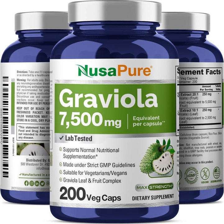 ¿Te imaginas alcanzar un bienestar pleno mientras ahorras tiempo y dinero? Imagina un suplemento natural que potencie tu vitalidad y te ofrezca un respaldo excepcional en tu día a día. Presentamos las cápsulas de Graviola, una magnífica fusión de naturaleza y ciencia para aquellos que valoran su salud. Con 7,500 mg de extracto potente por cápsula, estas cápsulas son tu aliado ideal.