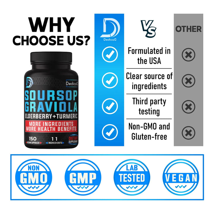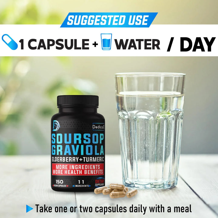 Capsulas De Guanabana Graviola 11 En 1 Con Sauco Curcuma Y Jengibre 150 Unidades