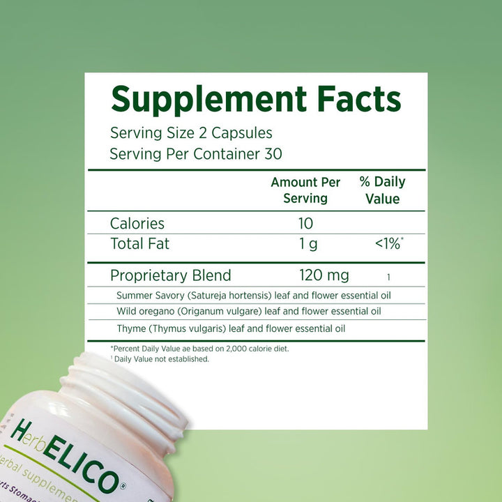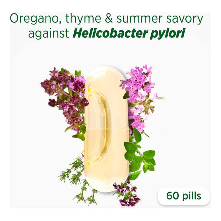 Estas cápsulas combinan los poderosos aceites esenciales de verano salado, orégano salvaje y tomillo, ingredientes naturales cuidadosamente seleccionados de la región mediterránea, reconocidos por sus propiedades terapéuticas para apoyar el mantenimiento de un estómago saludable. Estos aceites se enfocan en limpiar y restaurar el revestimiento de tu estómago sin causar efectos secundarios ni alterar la microflora del tracto gastrointestinal.